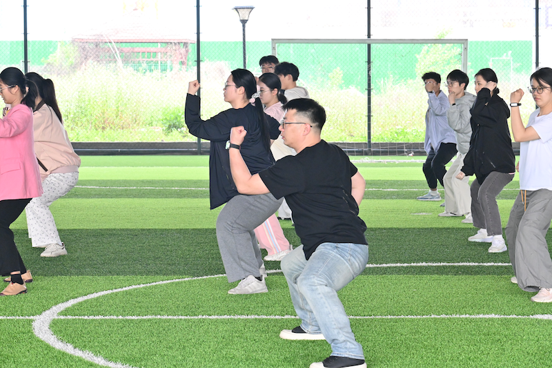 开营后,石超平老师围绕戚家拳的历史渊源、文化内涵及技法要点展开讲解,详细阐述了戚家拳与戚继光抗倭历史的紧密关联,解读了拳法中蕴含的刚健风骨与爱国情怀。讲解之余,石老师亲自示范戚家拳基础招式,一招一式刚劲有力、气韵十足,引导同学们在动作模仿中感受传统武术的独特魅力,在肢体舒展中体会非遗文化的深厚底蕴。学院团委对参训同学提出殷切期望,希望大家珍惜此次学习机会,以拳砺志、以武修身,在一招一式中强健筋骨、磨炼意志,在沉浸式学习中读懂抗倭历史、厚植文化自信,真切感悟戚继光将军的英雄气概,解锁属于新时代青年的传统武术打开方式。