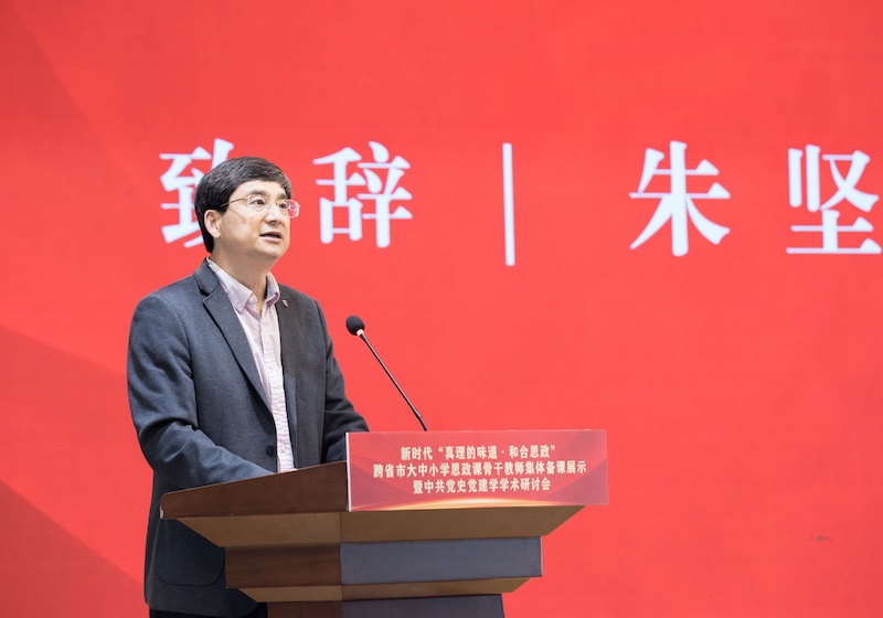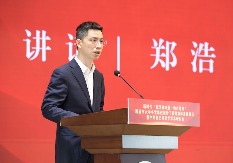 最后,郑浩在讲话中指出,本次“真理的味道・和合思政”跨省市大中小学思政课骨干教师集体备课展示暨中共党史党建学学术研讨会,是深化思政课一体化建设、推动东西部协同育人的重要实践。他表示,台州持续推进大中小学思政教育一体化建设,“和合思政”品牌成果丰硕,相关实践荣获省级教学成果一等奖并入选教育部典型案例,学科平台不断夯实,与新疆生产建设兵团多地的教育合作持续深化。郑浩强调,思政课是落实立德树人根本任务的关键课程,全市思政战线要提高政治站位、强化理论武装,高校要发挥引领作用,教师要守正创新提升育人能力,持续深化跨区域交流协作,不断扩大“和合思政”影响力,为培养时代新人、谱写中国式现代化台州篇章贡献更大力量。