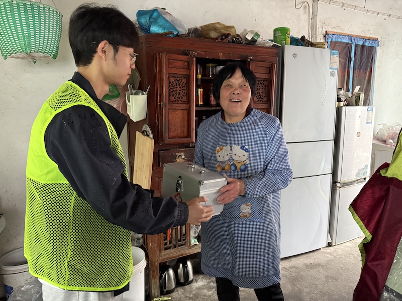 “药管家”团队又分组走进多户老人家中,开展入户用药安全指导。师生们手把手帮助老人清理家庭药箱,检查药品有效期,分类整理,对过期药品进行统一回收处理,并向每户赠送了装有常用外用药、创可贴、消毒用品等物资的“家庭小药箱”,附上手写的用药提醒标签。“以前只知道吃药,从来没注意过期不过期,今天孩子们帮我理得清清楚楚,还送了新药箱,心里踏实多了。”一位接受入户服务的老人拉着志愿者的手连连道谢。