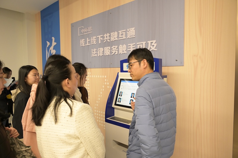 现场,大学生们还体验了“公证E通”一体机与公共法律服务自助终端,在数字化场景中直观感受知识产权公证、证据保全的高效便捷,为高校“智慧普法”提供了鲜活实践样本。
