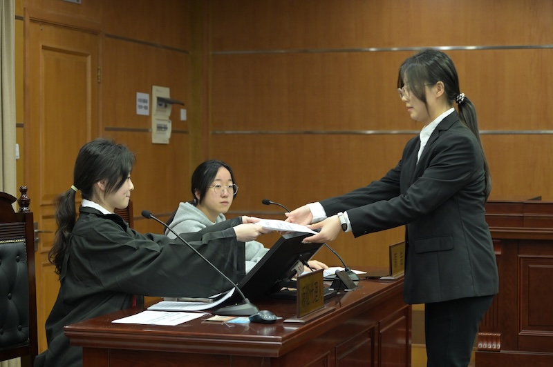 参观结束后,一场以真实案例为蓝本的模拟法庭正式开庭。宁波财经学院23级大宗商品交易专业学生带来《一条差评引发的官司》模拟庭审,围绕商业诋毁、不正当竞争等焦点展开激烈辩论,完整还原法庭调查、法庭辩论、当庭宣判等流程。规范的程序、严谨的表述、投入的演绎,赢得现场阵阵掌声。学生们将反不正当竞争法、知识产权保护等知识转化为实景实践,展现出青年学子的法治素养与担当。
