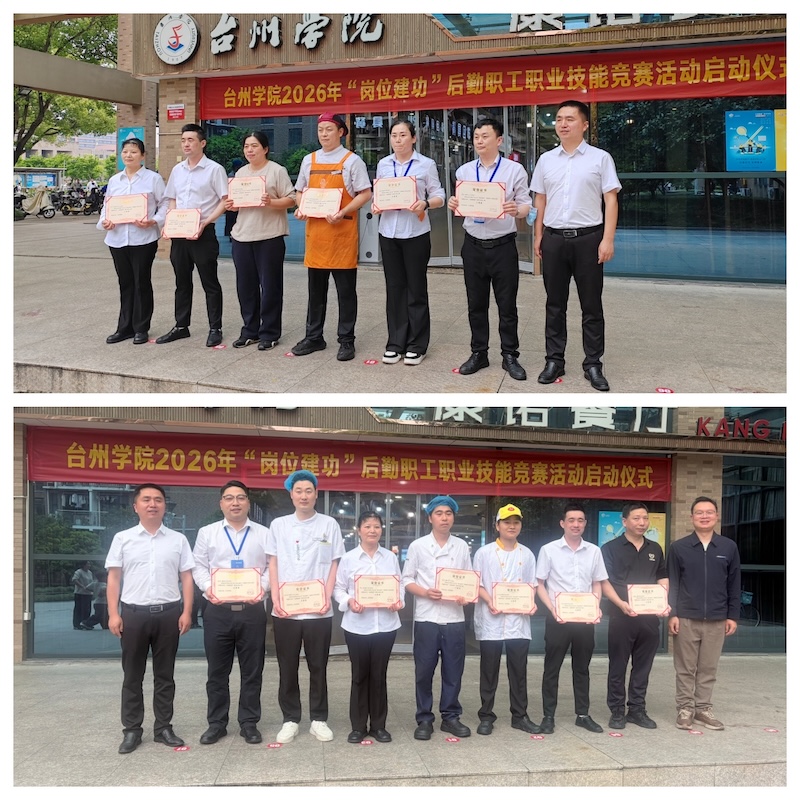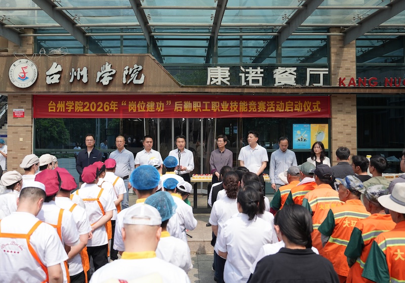 4月28日下午,台州学院在椒江校区一楼食堂举行2026年“岗位建功”后勤职工职业技能竞赛启动仪式暨厨师厨艺技能比赛活动。副校长、党委委员李建军出席并致辞,校工会、基本建设管理处、后勤服务管理处、招投标中心等部门负责人,食堂及学生代表参加活动。