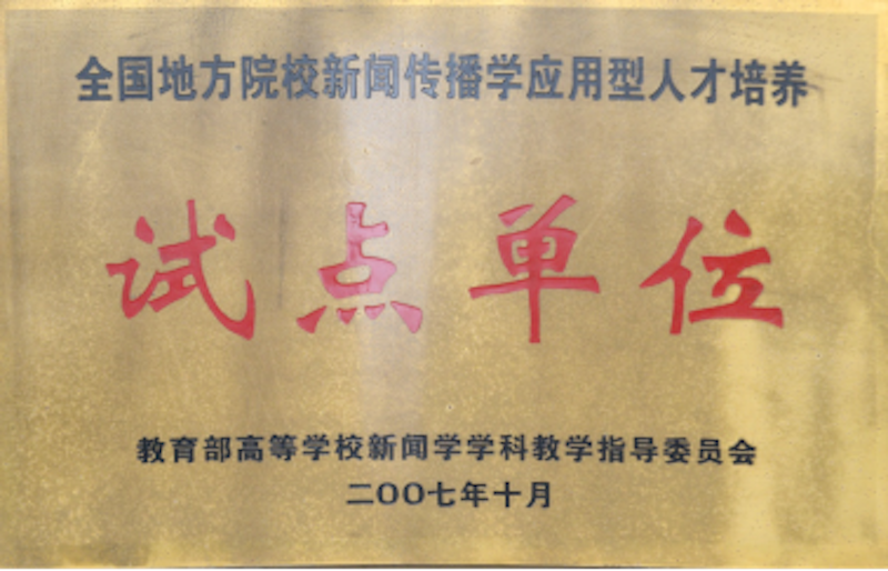 · 教育部新闻传播学本科教指委授予“全国地方院校新闻传播学应用型人才培养试点单位”(2008)