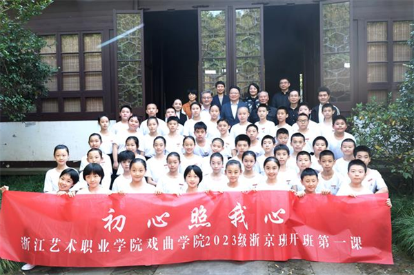 10月23日下午,浙江艺术职业学院、浙江京昆艺术中心联合培养2023级京剧班(京小班)开班典礼暨“开学第一课”在西湖畔盖叫天故居举行。这是浙江时隔31年再度开办京剧表演艺术专业订单班。50名小小京剧人行拜师礼、接练功带,以奋进之姿赓续浙江京剧薪火。