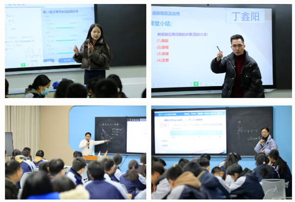 四节公开课精彩呈现:湖州艺术与设计学校裘艳讲授《正弦函数的图像》;德清职业中专马贵云讲授《函数模型及其应用》;景宁职高曹方真讲授《三垂线法求二面角》;丽水职高任晨雨讲授《正弦函数的性质》。