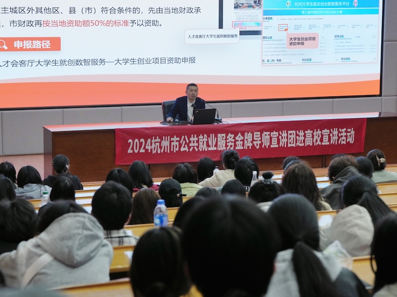 莫元波介绍了求职面试技巧,用丰富生动的案例,细致介绍了面试前准备工作、面试中自我介绍、面试后正向反馈等环节的实用技巧。详细解读杭州市创业就业政策,解读了当前大学生就业相关政策,介绍了不同的政策福利,明确自身可利用的资源与发展方向。在实际案例与就业创业形势分析中,分析当前就业市场的现状与趋势、不同行业的发展前景,提供了全面的就业市场信息参考。