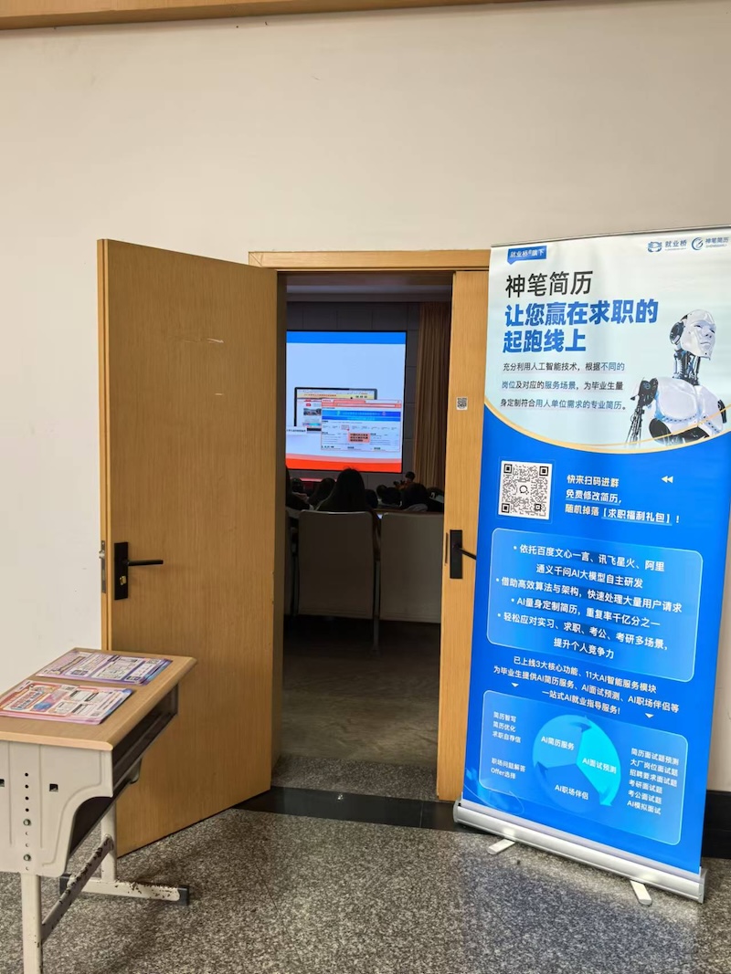 中国教育在线·就业桥的工作人员介绍大数据时代运用人工智能求职方法,现场展示了AI简历制作技术,帮助毕业生充分利用人工智能技术提高求职效能。