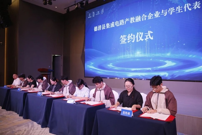 促进会的成立,为学校与企业提供了精准对接的直接渠道。会上,学生代表与集成电路企业进行现场就业签约。这生动体现了产教融合在促进人才高效、精准就业方面的即时成效,实现了“毕业即上岗”的无缝衔接。为紧密对接“323”产业体系,湖州技师学院和德清职业中专正在积极筹备“集成电路产教融合学院”,目标是实现“三个对接”:专业设置与产业需求对接、课程内容与职业标准对接、教学过程与生产过程对接。