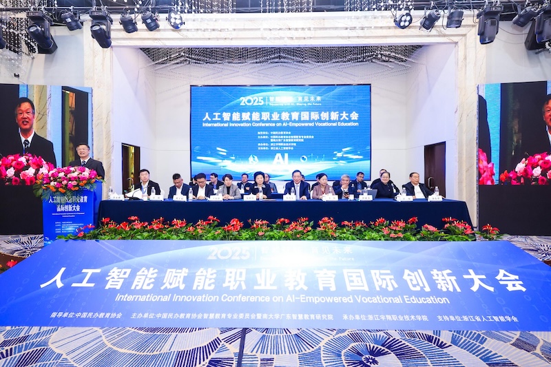 (通讯员:嘉彦)以“智能赋能·育见未来”为主题的人工智能赋能职业教育国际创新大会12月19日至20日在“两山”理念诞生地浙江安吉举行。民进中央副主席庞丽娟,浙江省教育厅二级巡视员朱鸿飞,民进浙江省委会专职副主委王安静,湖州市政协副主席、民进湖州市委会主委李红,中国民办教育协会智慧教育专委会秘书长刘子韬,中国工程院院士谭建荣,安吉县人民政府副县长章毅,北京大学现代教育技术中心主任汪琼,韩国延世大学教授、AI实用研究所所长金永勋,浙江宇翔职业技术学院董事长汤有祥,中央广播电视总台浙江总站常务副总编高珧,浙江省民办教育协会秘书长林晓鸣和泰国先皇理工大学工程学院副院长塔那维特·阿努翁皮尼特,浙江宇翔职业技术学院党委书记黄定瑞、执行校长汤学智及党政班子成员等领导和嘉宾与来自11个国家教育界、企业界和人工智能领域的250多位专家和业界精英围绕人工智能赋能职业教育的范式实践、产业学院建设、通识教育、院校管理、教师素养提升及垂类模型应用等六大核心议题展开研讨,并展示浙江在数字经济与职教改革方面的成果。浙江宇翔职业技术学院校长陈兴东主持大会开幕式。