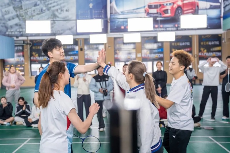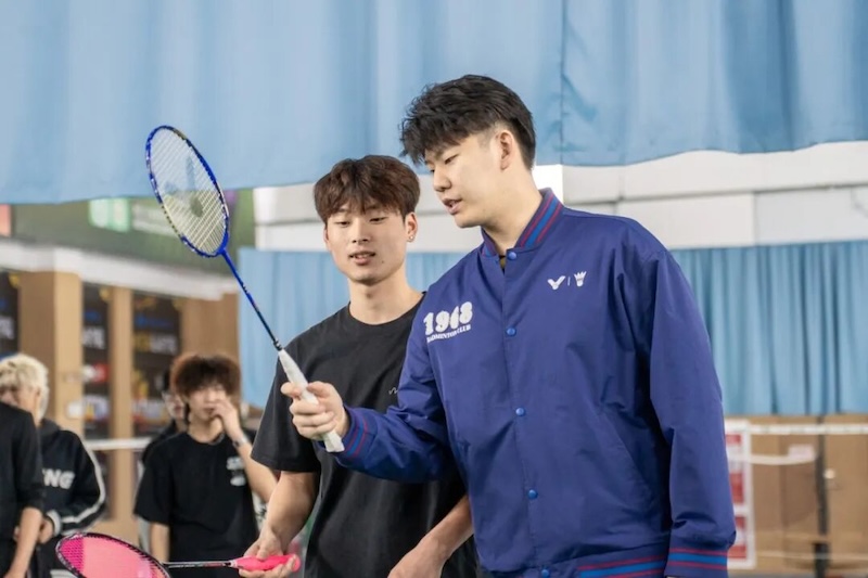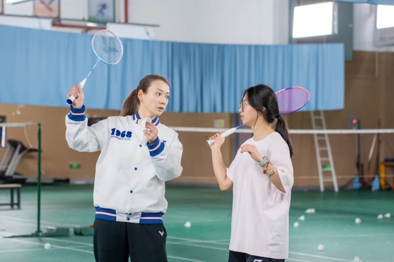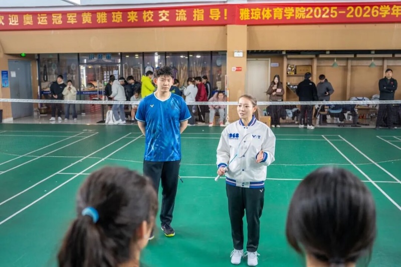 会前还开展了冠军课堂活动。黄雅琼、羽毛球世界冠军刘雨辰与学生进行了羽毛球互动教学,现场示范了发球、接发球及网前步法等关键技术动作,并结合自身训练经历深入浅出地讲解动作要领与实战策略,激发了学生对羽毛球运动的浓厚兴趣。学生们积极参与互动,现场气氛热烈。黄雅琼鼓励大家坚持热爱、科学训练,在体育锻炼中锤炼意志、提升自我,充分发挥体育的育人功能。