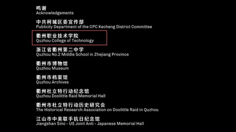 今年是中国人民抗日战争暨世界反法西斯战争胜利80周年。由中共衢州市委宣传部指导,衢州市新闻传媒中心与衢州市柯城艺眸文化传播工作室(由衢州职业技术学院优秀校友、校聘摄影摄像专业产业导师、11级摄影摄像技术专业郑英锋毕业后留衢创办)、中共柯城区委宣传部联合摄制的三集系列纪录片《寻找“杜立特”》在中央广电总台国际电视台CGTN新闻频道与纪录频道面向全球139个国家地区播出,全媒体传播触发跨洋记忆,一周内海外网络阅读量破1200万,在国际媒体平台引发热烈反响。