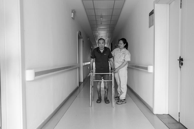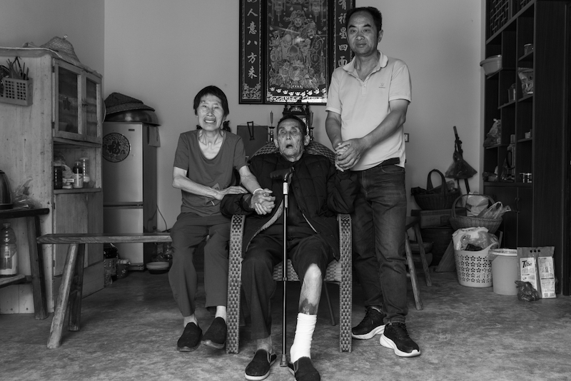 镜头下,老人们与家人相依的温馨场景,是对苦难的另一种抵抗。那些搀扶的手、凝视的目光,诉说着亲情如何成为他们抵御孤独与病痛的最后屏障。通过家庭合影,我希望呈现的不仅是创伤,更是生命在绝境中的坚韧——他们不仅是受害者,也是丈夫、父亲、祖父……