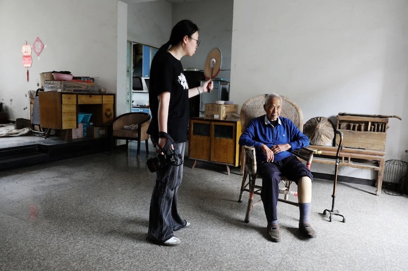 2025年5月,李珊珊现场采访细菌战受害者徐生雨