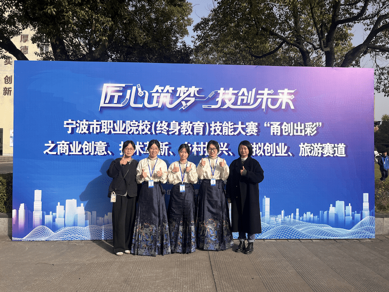 参赛学生:24国商1 余易菲、邵韵璇(班主任 王其辉)23无人机 夏一木(班主任 董启迪)24会计2 朱佳禾(班主任 章佩君)